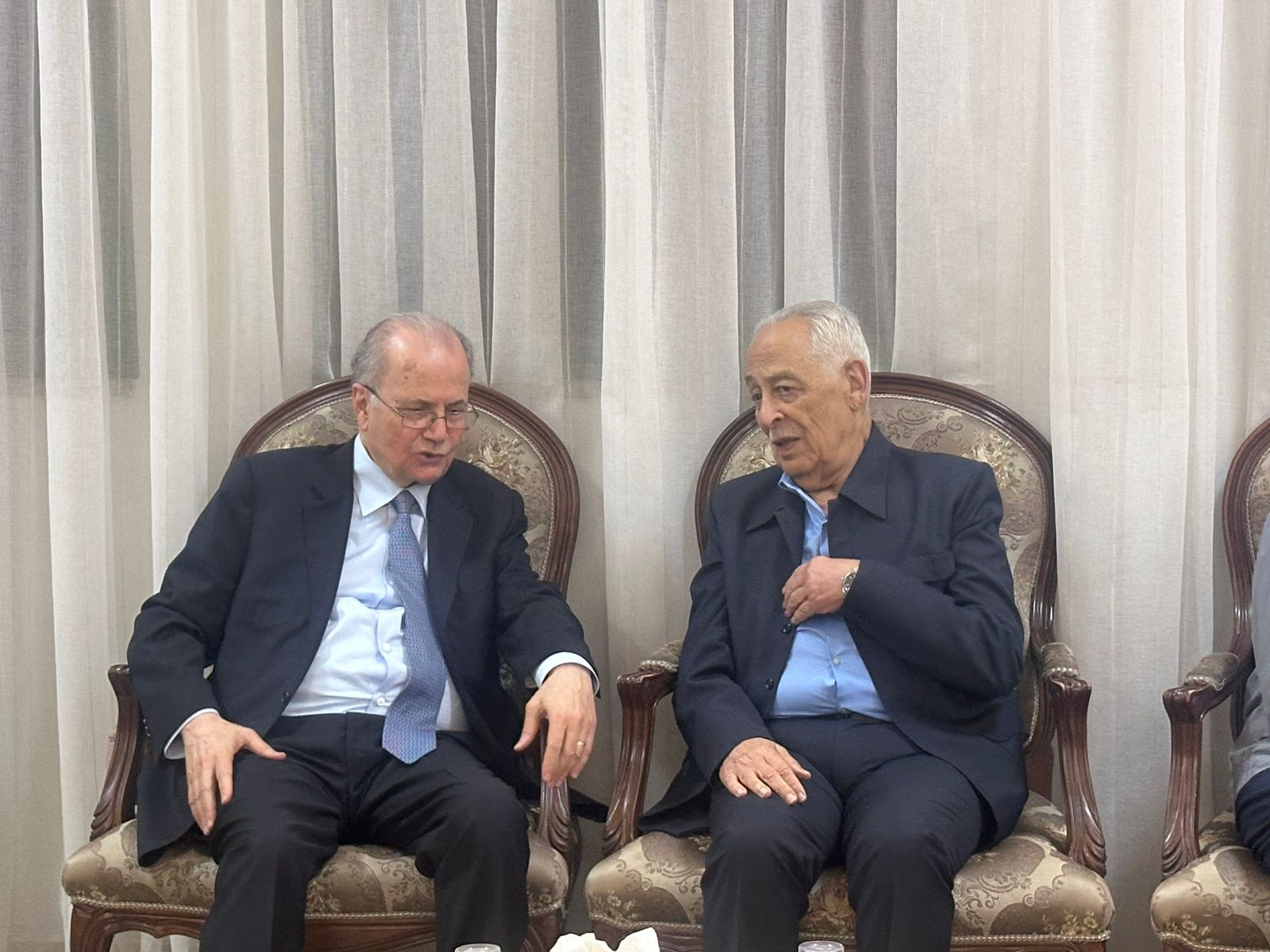 المستقل – مندوبا عن جلالة الملك عبدالله الثاني وسمو الامير الحسين بن عبدالله الثاني، ولي العهد، قدم رئيس الديوان الملكي الهاشمي يوسف حسن العيسوي واجب العزاء بوفاة الدكتور عادل عبدالله مصطفى، شقيق دولة رئيس وزراء دولة فلسطين الدكتور محمد مصطفى.