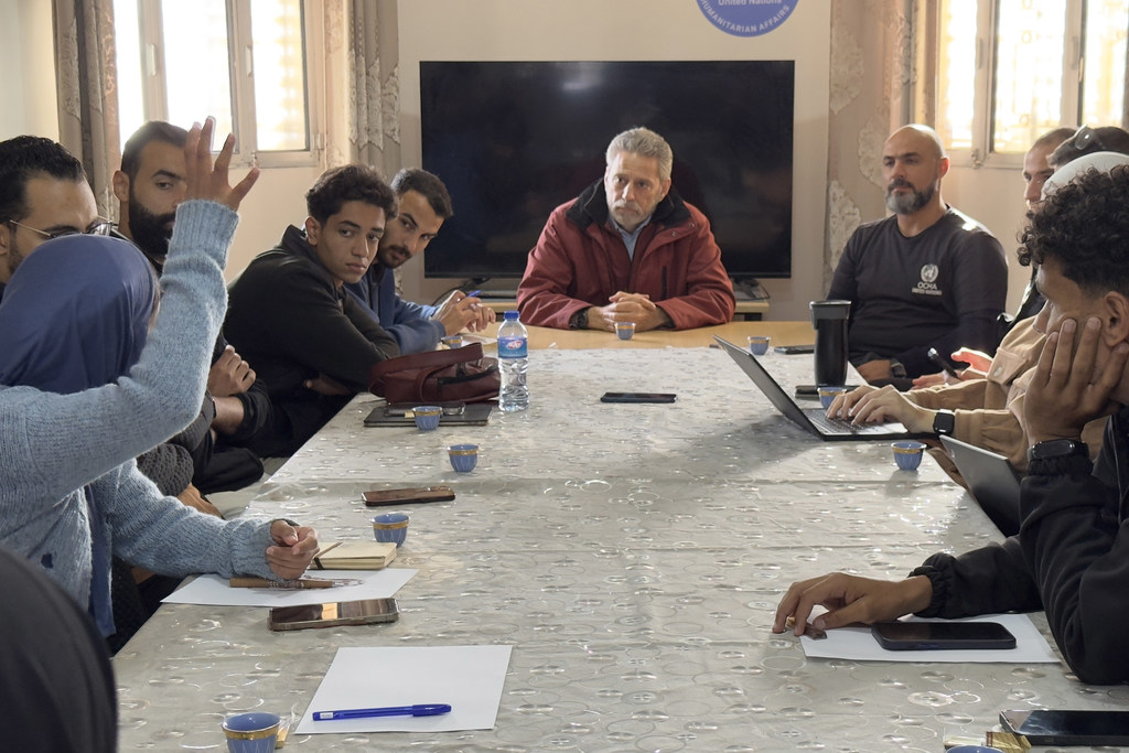 “سيحتاج الأطفال إلى قطع شوط كبير من العلاج النفسي كي يستطيعوا إكمال حياتهم”، كلمات استمع إليها المسؤول الأممي من شابة فلسطينية كانت ضمن مجموعة من الشباب والشابات التقاهم هادي في مقر مكتب تنسيق الشؤون الإنسانية في غزة في اليوم الثاني لزيارته.