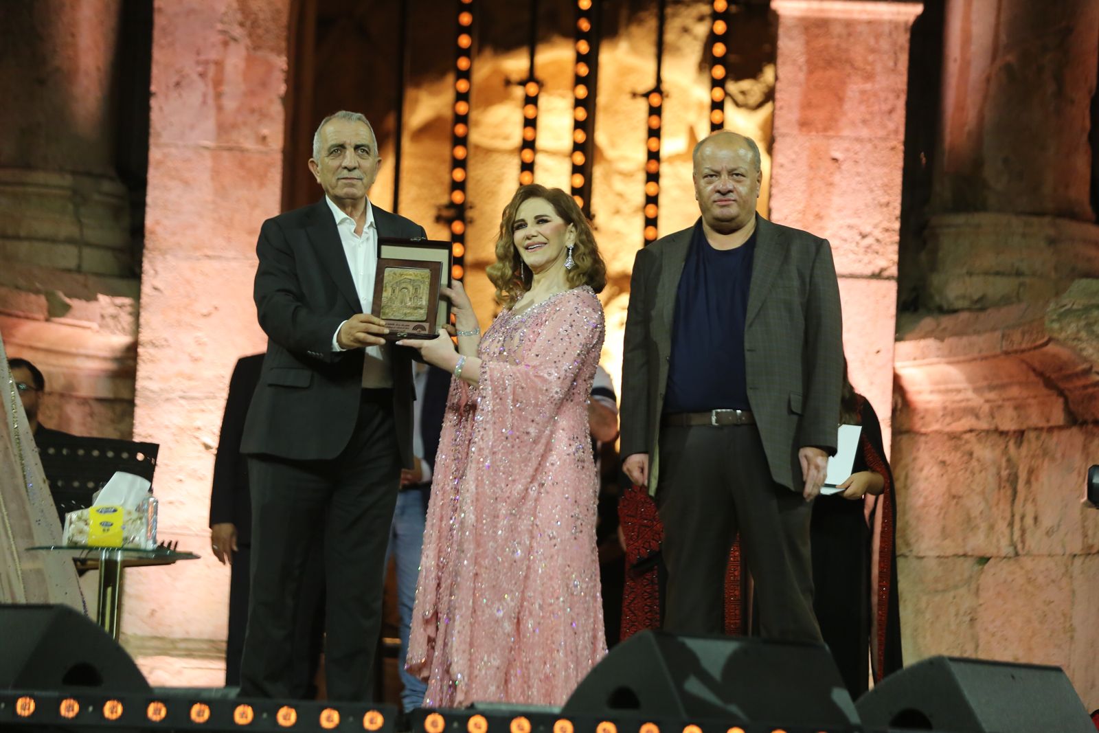 وبحضور وزير الثقافة مصطفى الرواشدة والفنان مصطفى كامل نقيب الموسيقيين المصريين والفنان خالد زكي، حيت ميادة الجمهور.. ورحبت بالوفود المصرية التي تزور الاردن ثم غنت “مهما يحاولوا يطفوا الشمس” ومنها :