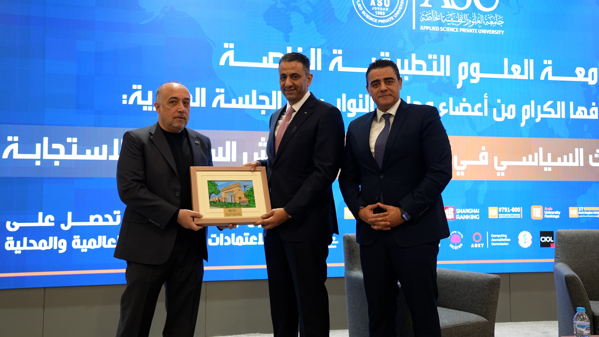 وفي كلمته، أكد رئيس مجلس أمناء جامعة العلوم التطبيقية الخاصة الدكتور هيثم عبدالله أبو خديجة أن خطاب العرش السامي شكّل خارطة طريق واضحة لمسيرة الإصلاح الشامل، ورسّخ ثوابت الدولة، وفتح آفاقًا واسعة للتحديث السياسي القائم على المشاركة وسيادة القانون وتعزيز الحياة البرلمانية. وأشار إلى الدور المحوري لمجلس النواب بوصفه ركنًا أساسيًا في منظومة العمل الوطني، وحاملًا لأمانة التمثيل الشعبي ومسؤولية التشريع والرقابة، مؤكدًا أن التحديث السياسي مسار وطني راسخ يقوم على تعميق الوعي وترسيخ ثقافة الحوار والمسؤولية.