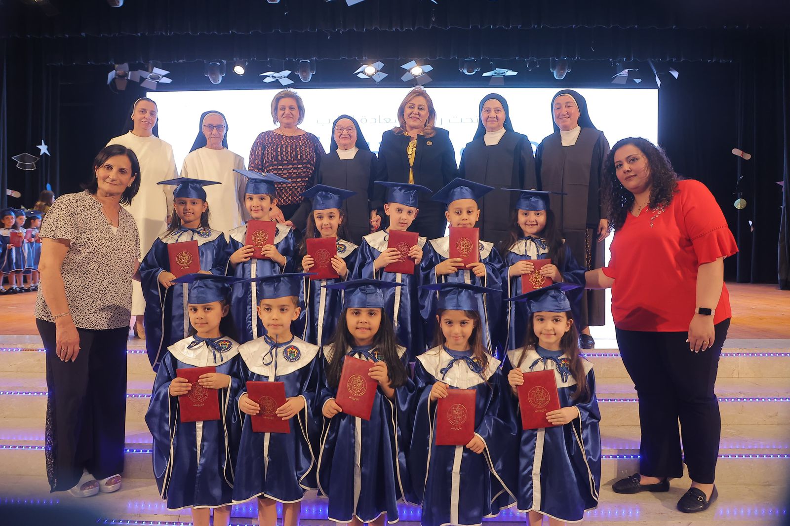 وقالت نفاع: “نلتقي اليوم في مناسبة تنبض بالفرح، لنحتفل بمحطة غالية في مسيرة أحبّتنا الصغار، حيث تنتهي مرحلة أولى من الرحلة، ويُفتح بابٌ جديد نحو مستقبل مشرق”، مشيدة بالدور التربوي الكبير الذي تقوم به الراهبات والمعلمات في غرس القيم وتعزيز الإيمان في نفوس الأطفال.