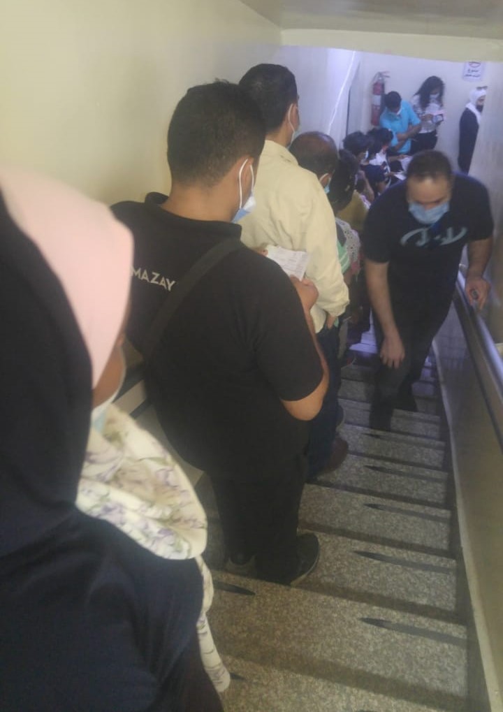 وقال المواطنين في حديث لموقع “المستقل الاخباري” اليوم الاربعاء الموافق 10/8/2022 ، بان المراجعين يصطفون على شكل طابور في انتظار دورهم لاجراء الفحوصات ، بالاضافة الى ان القاعة التي يجري فيها سحب عينات الدم لا يتوفر فيها مكيفات او تهوية ودرجة الحرارة فيها مرتفعة بالاضافة الى انها تقع في الطابق السفلي .
