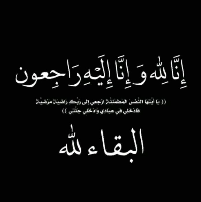 بسم الله الرحمن الرحيم : (الذين إذا أصابتهم مصيبة قالوا انا لله وانا اليه راجعون) . صدق الله العظيم