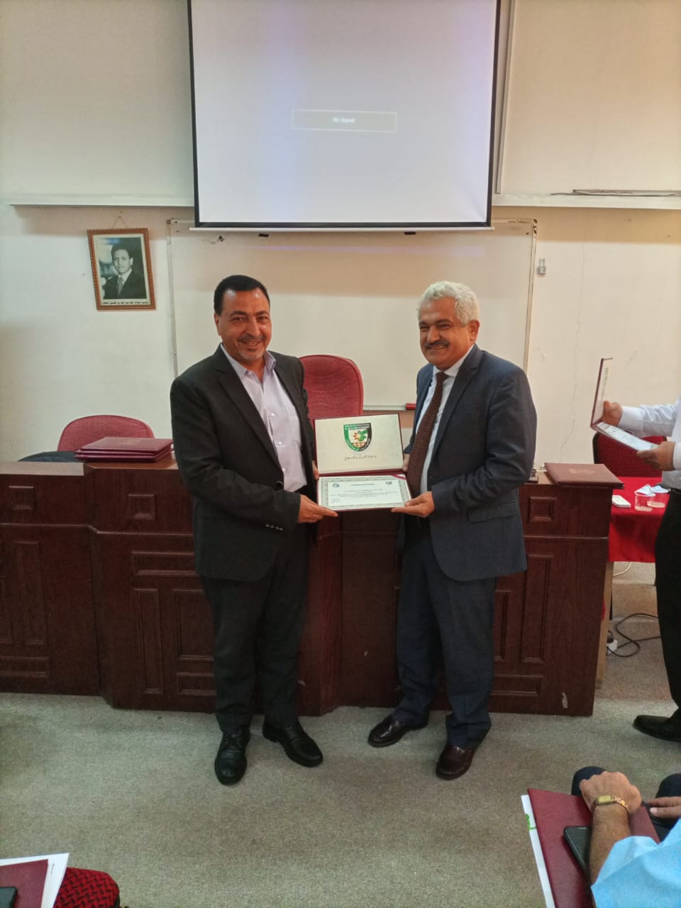المستقل - مندوبا عن رئيس جامعه البلقاء التطبيقية الأستاذ الدكتور أحمد العجلوني افتتح عميد كلية الحصن الجامعية الأستاذ الدكتور كامل الزبون ورشة علمية بعنوان تكنولوجيا إدارة مخلفات معاصر الزيتون، وخلال كلمته رحب الدكتور الزبون بالمحاضرين والمشاركين في هذه الورشة وأكد على دور الأكاديميين في حل المشكلات البيئية وأن تنظيم هذه الورشة جاء من فلسفة الجامعة البلقاء التطبيقية بالتشاركية وخدمة المجتمع المحلي في سبيل خدمة الوطن. المقدم عمر الرميثان من الإدارة الملكية لحماية البيئة إستعرض في كلمة له دور الإدارة في مراقبة المعاصر وتتبع نقل مخلفات معاصر الزيتون. وفي محاضرة قاسم الروسان نائب نقيب اصحاب معاصر الزيتون أكد على ضرورة وجود حل لهذه المخلفات من خلال تعاون جميع الأطراف من القطاع الصناعي والأكاديمي والمؤسسات الأهلية. المهندس ليث القضاه رئيس قسم ترخيص المعاصر في وزارة الزراعة تحدث عن أهميه زراعة الزيتون ودورها في الإقتصاد الوطني حيث يشكل الزيتون 70% من مساحة الأشجار المزروعة بالأردن وهنالك 143 معصرة بطاقة اجماليه 400 طن بالساعه واستعرض جهود الوزارة في معالجة هذه المخلفات وإدارتها. واستعرض الدكتور سلام أيوب من المركز الوطني للبحوث الزراعية تجربة المركز الوطني في مجال إدارة هذه المخلفات في تحسين خواص التربة وزيادة إنتاجها. كما حاضر في الورشة فياض الزيود حول تطبيقات تكنولوجيا إدارة هذه المخلفات وما يتم تطبيقه في دول العالم المتقدم وأكد على ضرورة ايجاد تشريعات تسمح بإعادة استخدام هذه المياه بصورة يقلل من تاثيرها على البيئة وأن الحلول تتوفر بتضافر الجهود لجميع الجهات. محمود العمري الناطق الرسمي لنقابة أصحاب المعاصر استعرض تجربته في عدد من المعاصر لإدارة هذه المخلفات وبين أهميه تظافر جهود الجهات الحكومية مع أصحاب المعاصر لغايات استدامة الحل . وفي نهاية الورشة قدم الدكتور عميد كليه الحصن الجامعية شهادات الشكر والتقدير على المحاضرين.