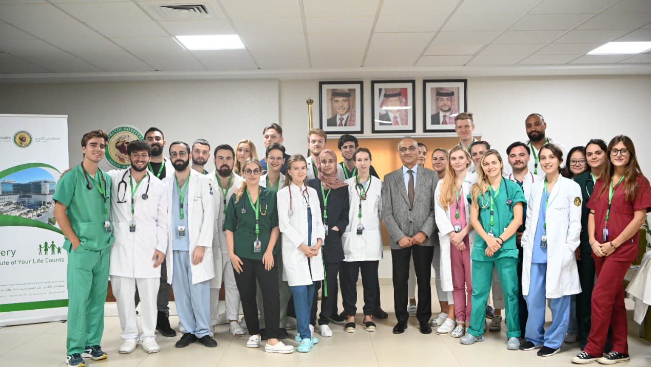 واشار انه تم توقيع اتفاقية تعاون طبي مع فرع الاتحاد الدولي لطلبة الطب في جامعة البلقاء حيث تم استقبال وفدا طلابيا ثانيا، يضم 30 طالبا وطالبة من معظم دول العالم  لتدريبهم في اقسام المستشفى المختلفة بهدف اكسابهم المهارات اللازمة والاساسية في المجال الطبي العملي لربط المعرفة النظرية التي اكتسبوها بالتطبيق العملي في المستشفى.