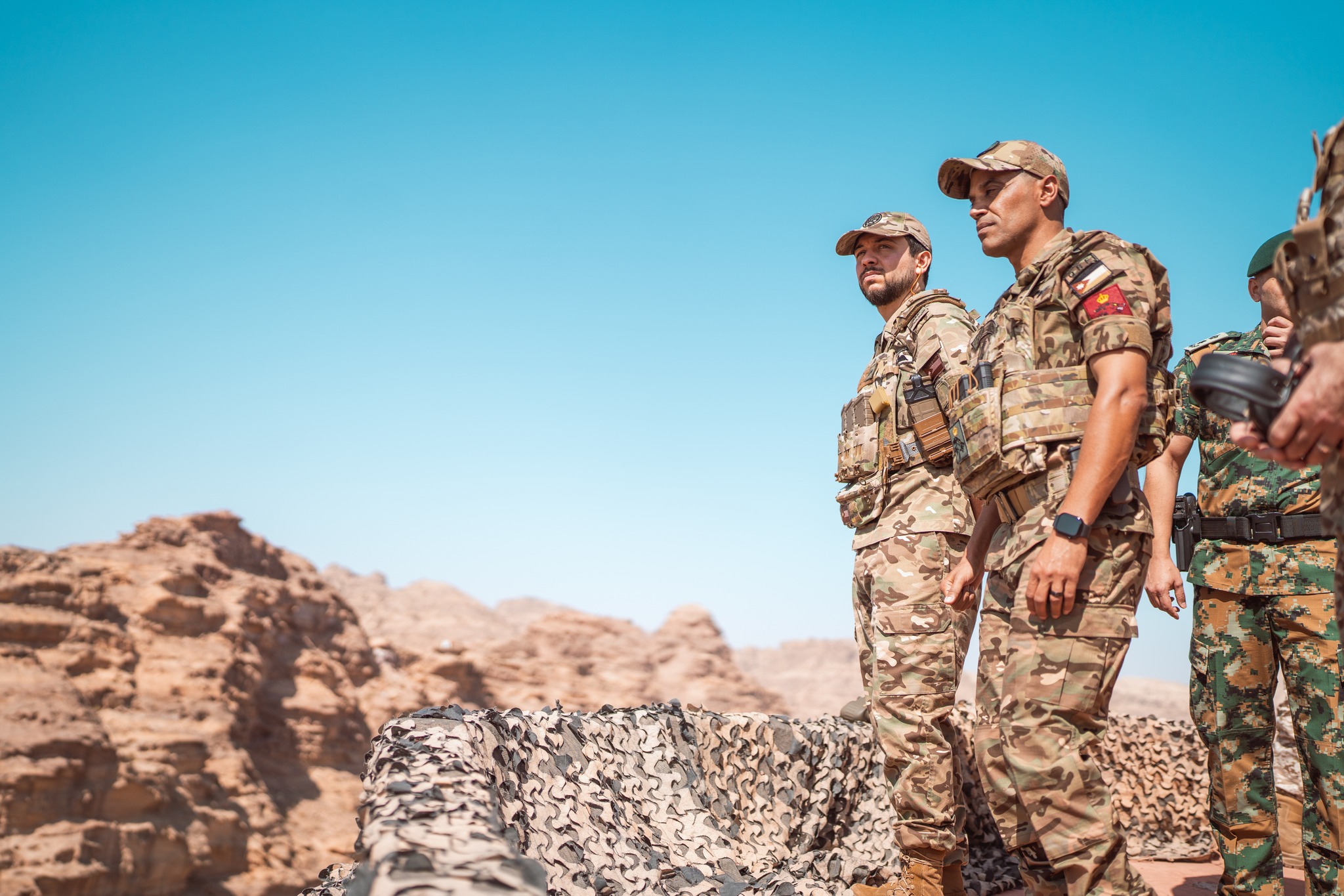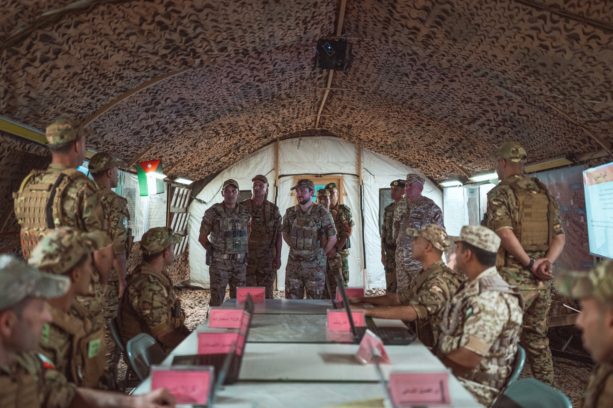 وكان في استقبال سموه لدى وصوله موقع التمرين، رئيس هيئة الأركان المشتركة اللواء الركن يوسف أحمد الحنيطي، وقائد اللواء، وعدد من كبار ضباط القوات المسلحة الأردنية – الجيش العربي.