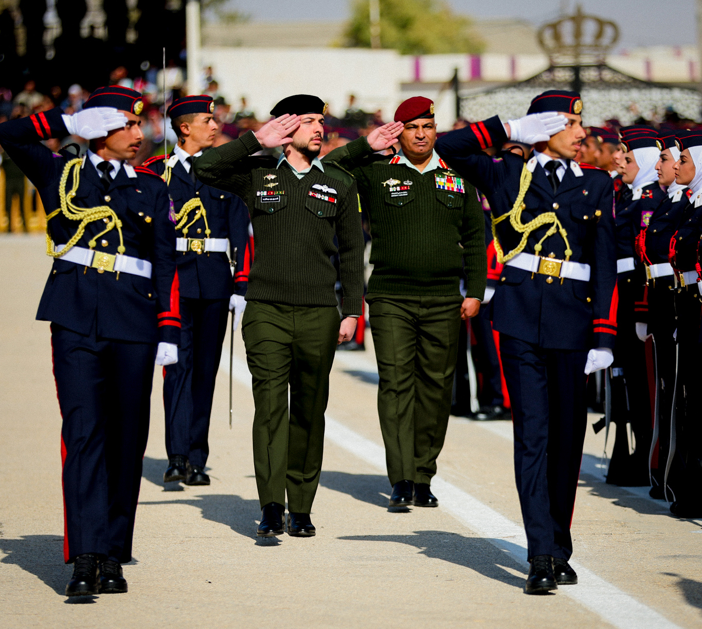 وسلم سمو ولي العهد الجوائز التقديرية لأوائل الخريجين، بحضور مدير المخابرات العامة اللواء أحمد حسني، ومدير الأمن العام بالإنابة العميد محمد طبيشات، وعدد من المسؤولين المدنيين والعسكريين.