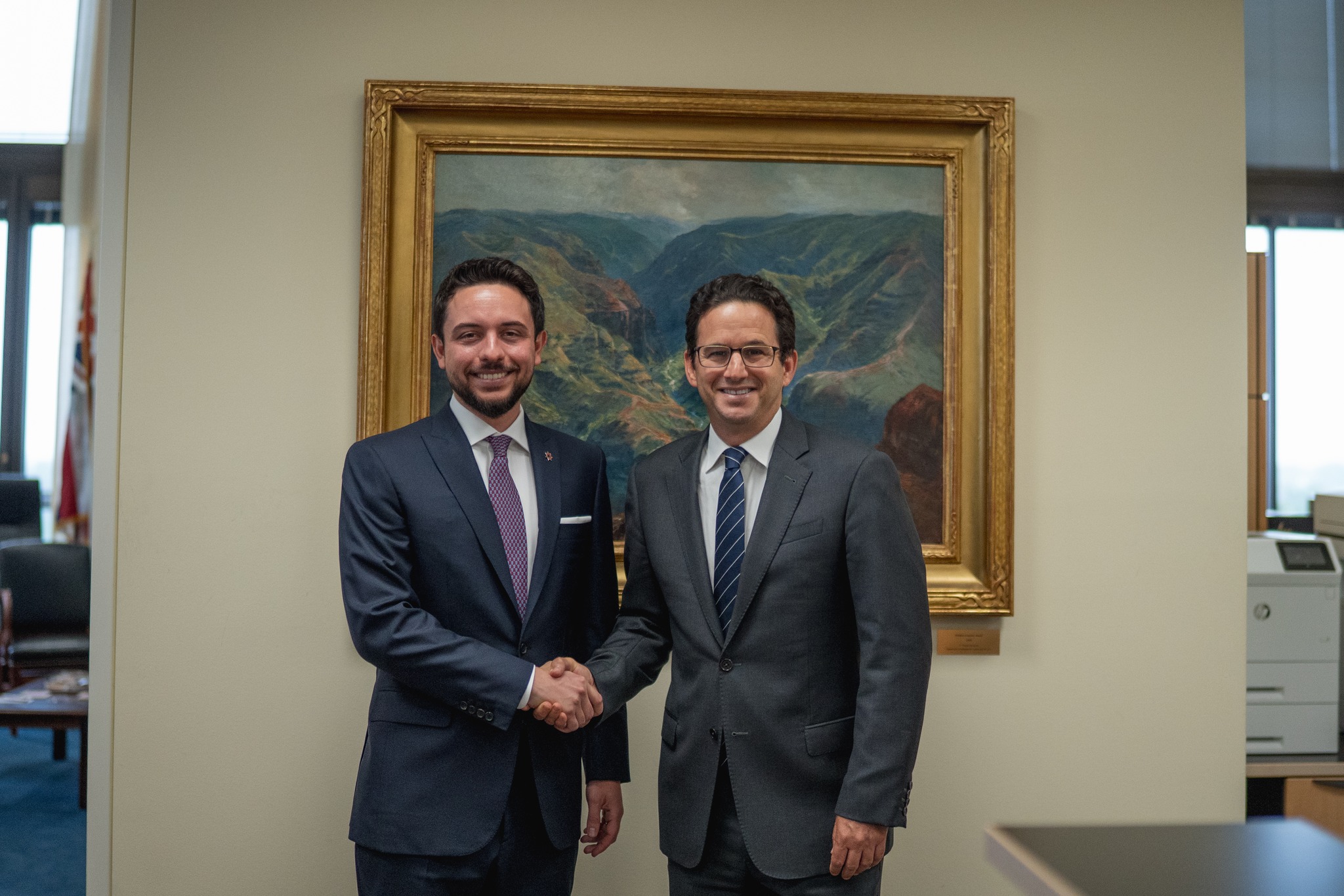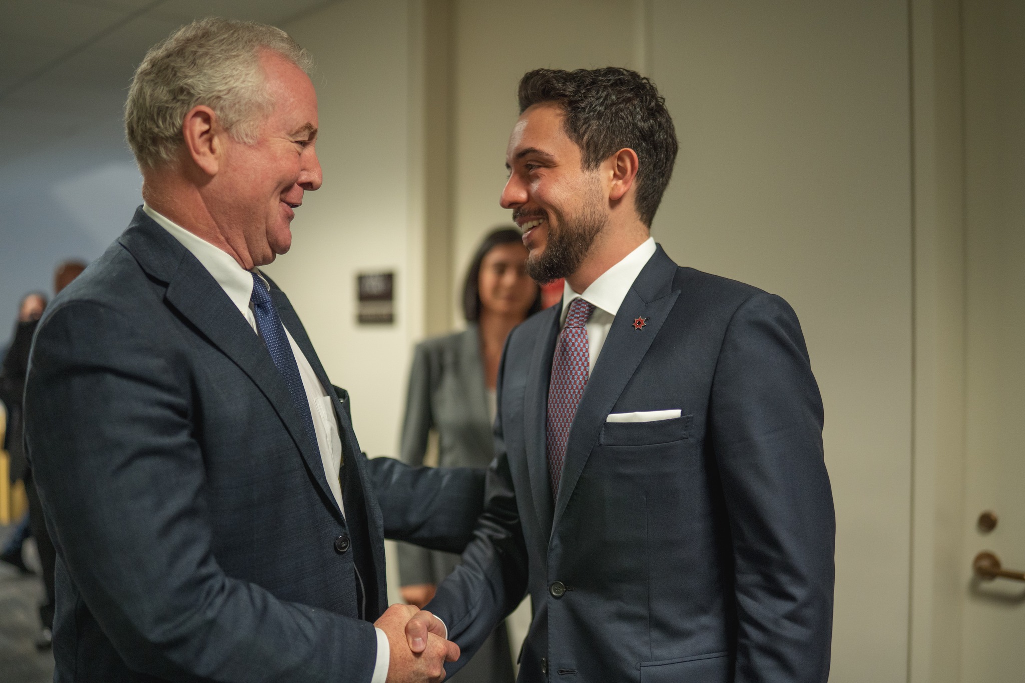 وخلال لقاء مع نائب رئيس لجنة المخصصات في مجلس النواب الأمريكي ورئيس اللجنة الفرعية للأمن القومي ووزارة الخارجية النائب ماريو دياز بالارت، لفت سمو ولي العهد إلى أهمية تعزيز التعاون الاقتصادي بين الأردن والولايات المتحدة، بما يسهم في تحقيق أهداف رؤية التحديث الاقتصادي.