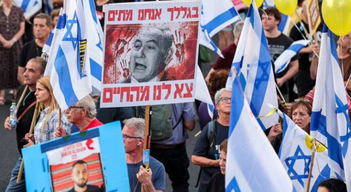 المستقل – خرج آلاف المتظاهرين للشوارع في تل أبيب ومدن فلسطين المحتلة، للمطالبة بإسقاط حكومة بنيامين نتنياهو وإبرام صفقة تبادل أسرى مع حركة المقاومة الإسلامية حماس.