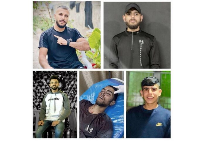 محمد سعيد حسين صوافطة (19 عاما)، ومجد برهان جميل صوافطة (23 عاما)، وقيس صائب راتب صوافطة (24 عاما)، وياسين أحمد علي صوافطة (22 عاما)، وطلبة محمود جميل بشارات (18 عاما).